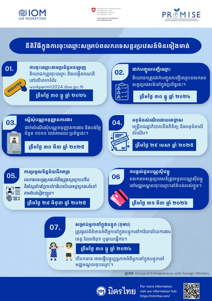 នីតិវិធីក្នុងការចុះឈ្មោះសម្រាប់ពលករទេសន្តរប្រវេសន៍មិនទៀងទាត់ Facebook iconFacebookTwitter iconTwitterLINE iconLine