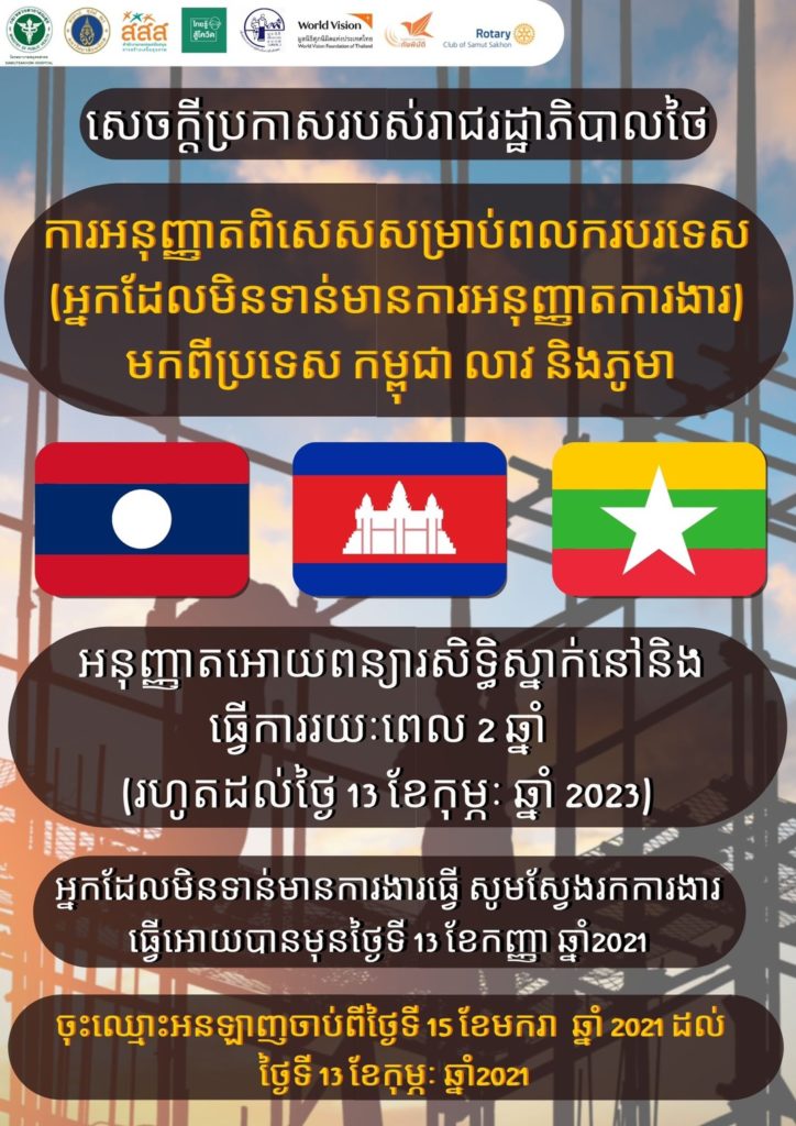Cabinet Resolution dated 29 Dec 2020 – Special permission for migrant workers from Myanmar, Laos, Cambodia to work legally for 2 years
