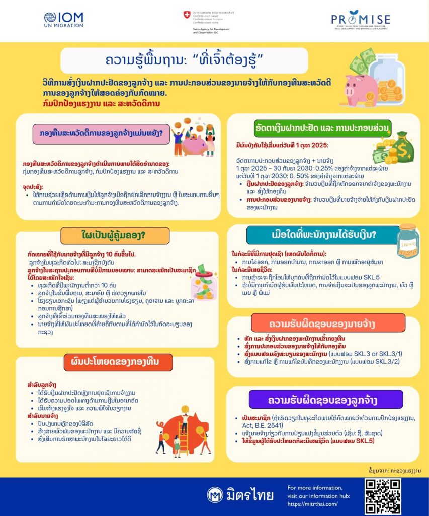 ວີທີການສົ່ງເງີນຝາກປະຢັດຂອງລູກຈ້າງ ແລະ ການປະກອບສ່ວນຂອງນາຍຈ້າງໃຫ້ກັບກອງທືນສະຫວັດດີການຂອງລູກຈ້າງໃຫ້ສອດຄ່ອງກັບກົດໝາຍ Facebook iconFacebookTwitter iconTwitterLINE iconLine