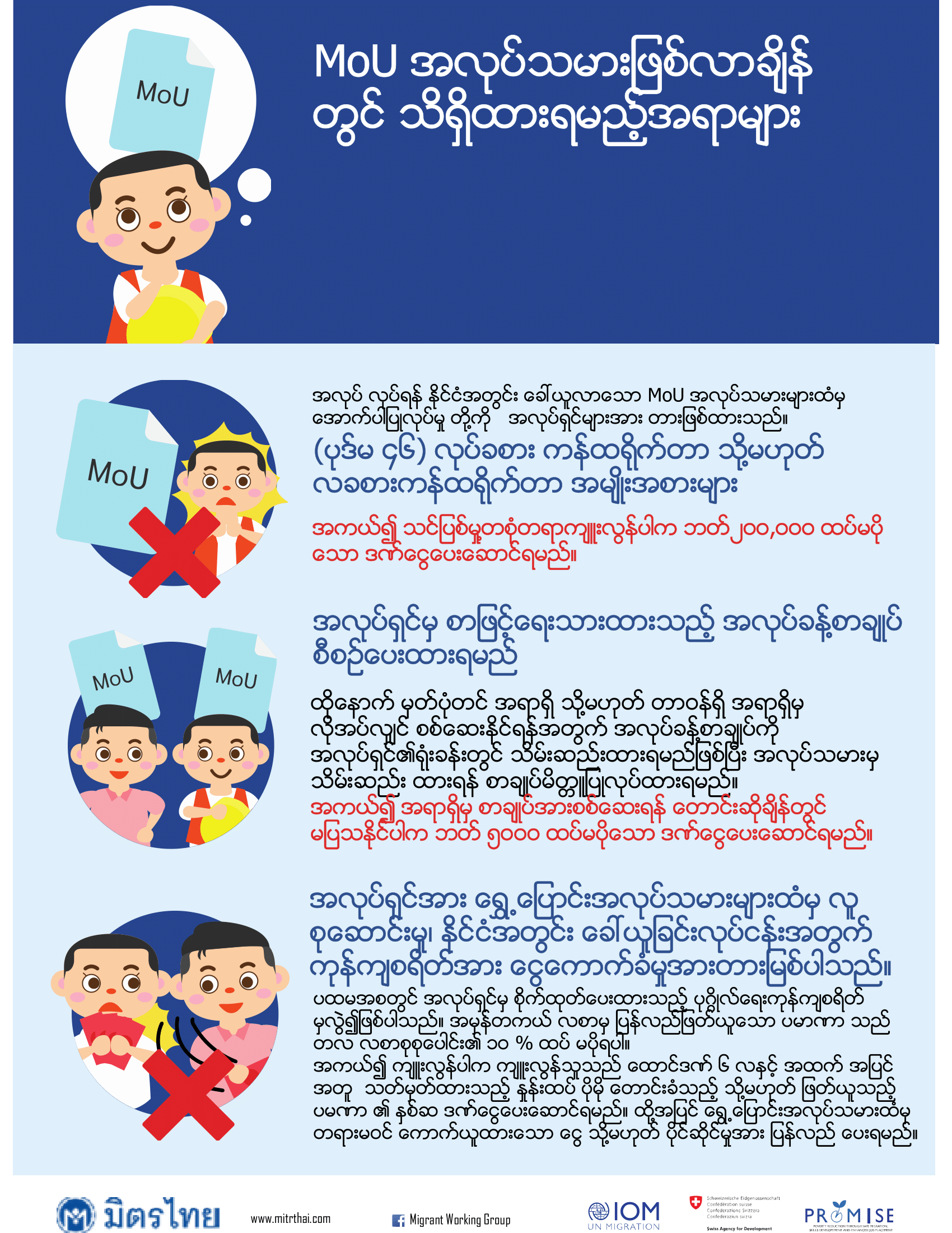 MoU အလုပ်သမားဖြစ်လာချိန် တွင် သိရှိထားရမည့်အရာများ Facebook iconFacebookTwitter iconTwitterLINE iconLine