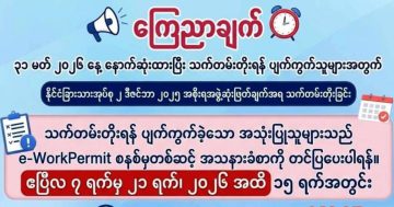 မြန်မာနိုင်ငံရှိ အလုပ်သမားများ အလုပ်လုပ်ကိုင်ခွင့်လက်မှတ်တက်တိုးခြင်း လုပ်ငန်းစဉ်များ 4 December 20244 December 2024 ข่าวสาร, ประกาศ