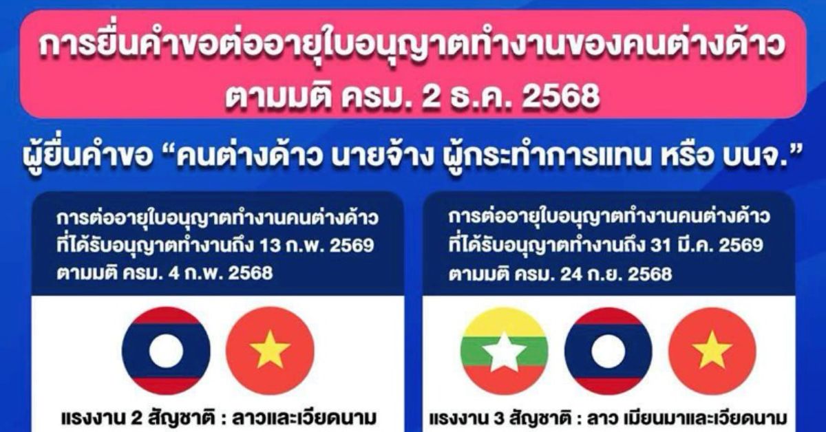 การยื่นคำขอต่ออายุใบอนุญาตทำงานของแรงงานข้ามชาติตามมติ ครม. 2 ธ.ค. 2568